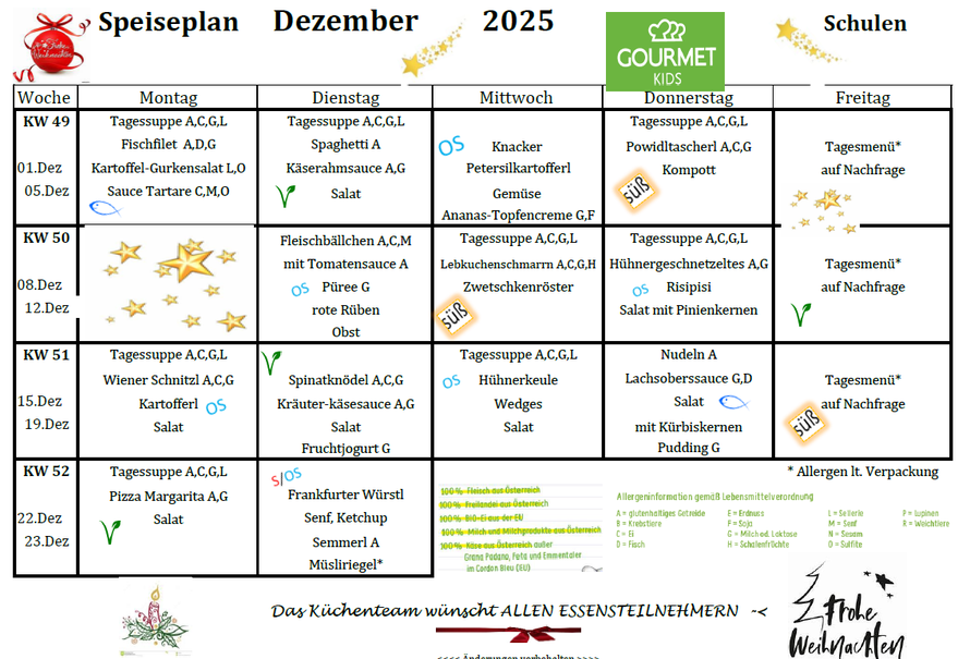 An der Mittelschule St. Martin wird Nachmittagsbetreuung und Mittagessen angeboten. Täglich wird in der Mittagspause von 12:10 Uhr bis 13:05 Uhr gegessen.
